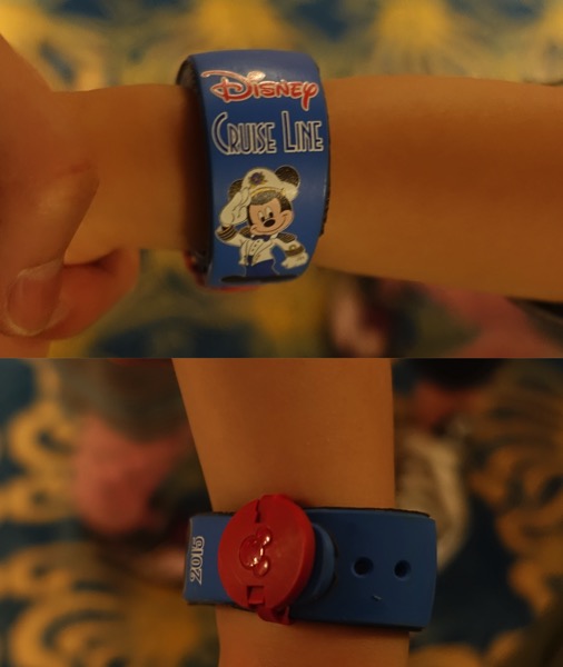 クルーがミッキーバンドにアレルギーがあることを示す赤いマークを付けてくれました。