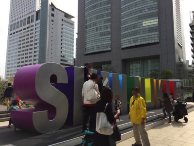 SHINJUKUという文字で子どもたちが遊んでいます。 ちょっとした広場もできていて、子どもたちが走り回っていました。