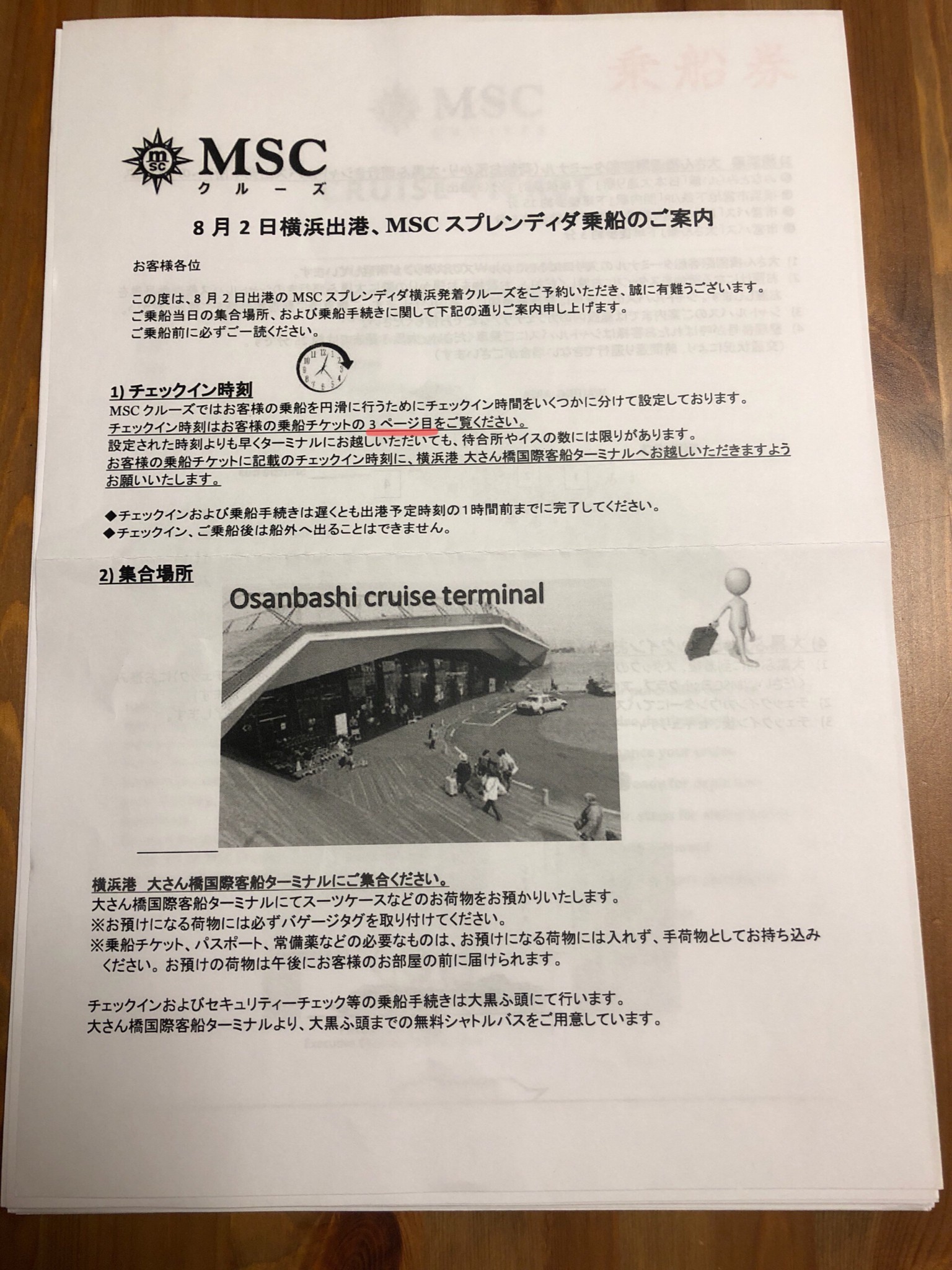明日からMSCスプレンディダ号に乗船するのですが、届いていた書類を今頃確認。