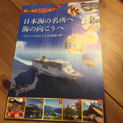 日本海周遊クルーズのパンフレットにクルーズの魅力を文章とイラストで紹介させていただきました。見開き2ページ頂いてたっぷり紹介しています。