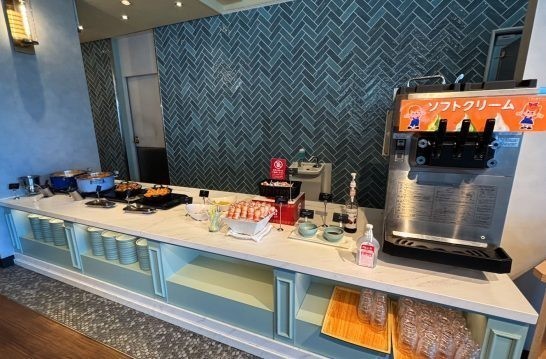 ソフトクリーム・乳酸菌飲料・棒付きキャンディー(?)・ハッシュポテト・唐揚げ・チキンライス・スクランブルエッグが用意されていました。デミグラスソースが用意してあるのがさすがホテル…