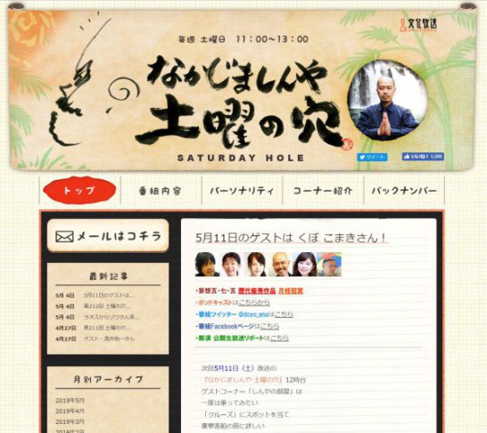 5月11日(土)に文化放送「なかじましんや 土曜の穴(毎週土曜日11時から13時)」に出演させていただきます! CMディレクターとして有名な「中島信也さん」がメインパーソナリティを務める番組です。 私は12時台のコーナー「しんやの部屋」にゲストとして... -