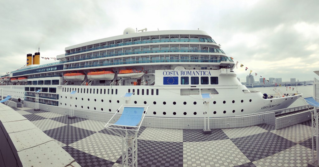 東京港からパノラマ撮影したコスタ・ネオロマンチカ号。