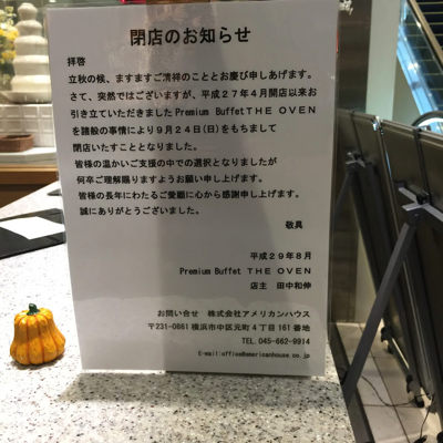 残念・・・新宿タカシマヤ『Premium Buffet THE OVEN』閉店